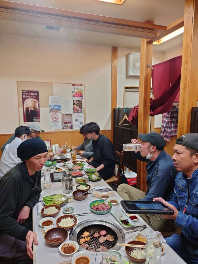 「次はどれ焼く?」「これもう食べごろじゃない?」なんて会話をしながら、網を囲む時間はやっぱり格別。普段は別の現場やデスクでバリバリ働いているメンバーとも、美味しいものを前にすると自然と会話が弾みます。